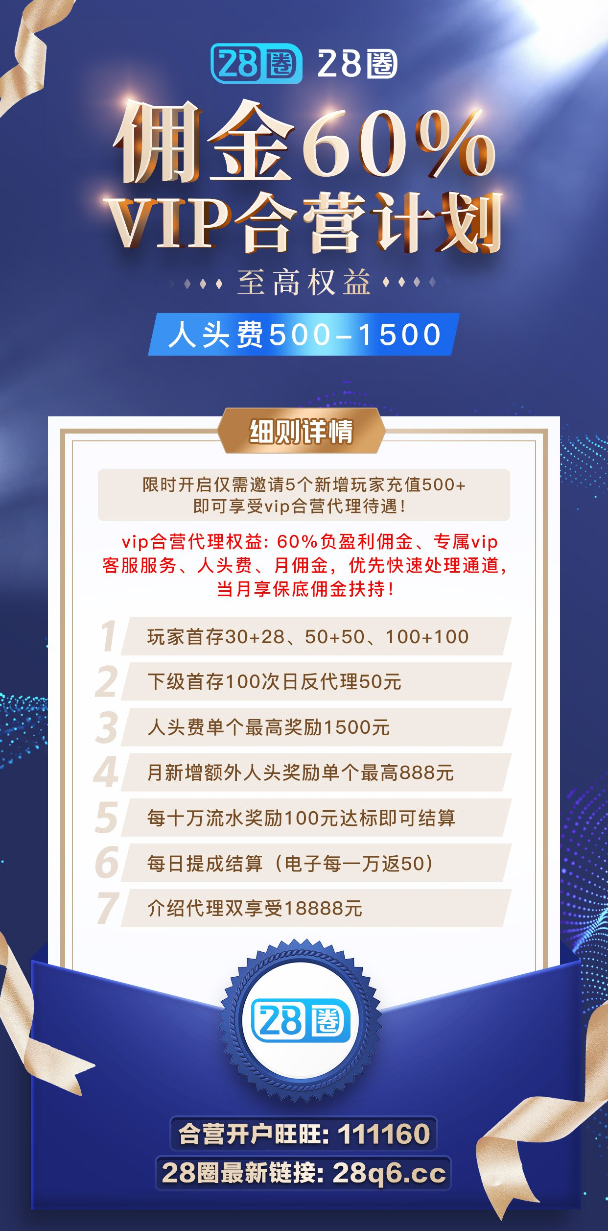 1.扶持【VIP合营伙伴】60%负盈利佣金,专属客服,保底佣金5888护航!