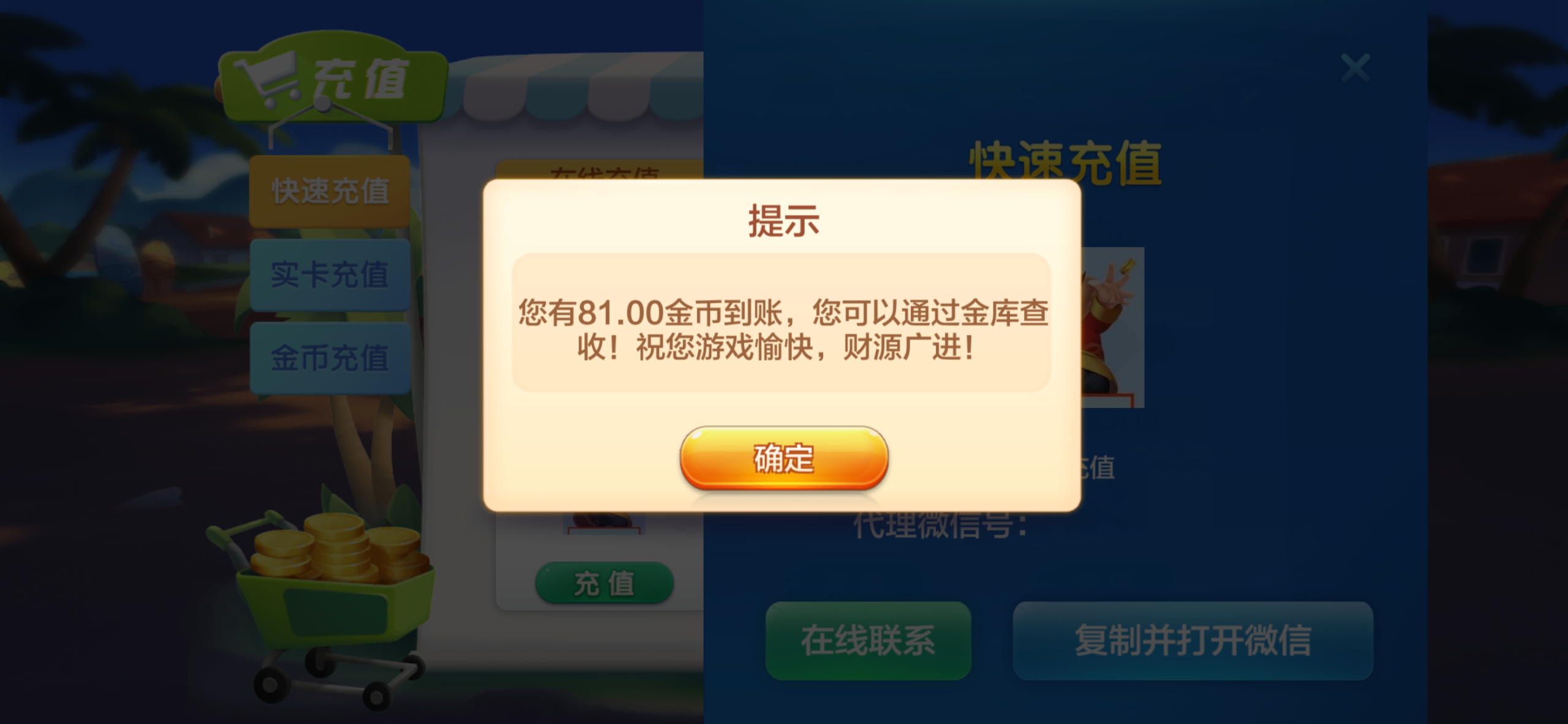 到账3张,要下分直接去在线充值那里加代理vx就可以了转给它金币就可以下分了