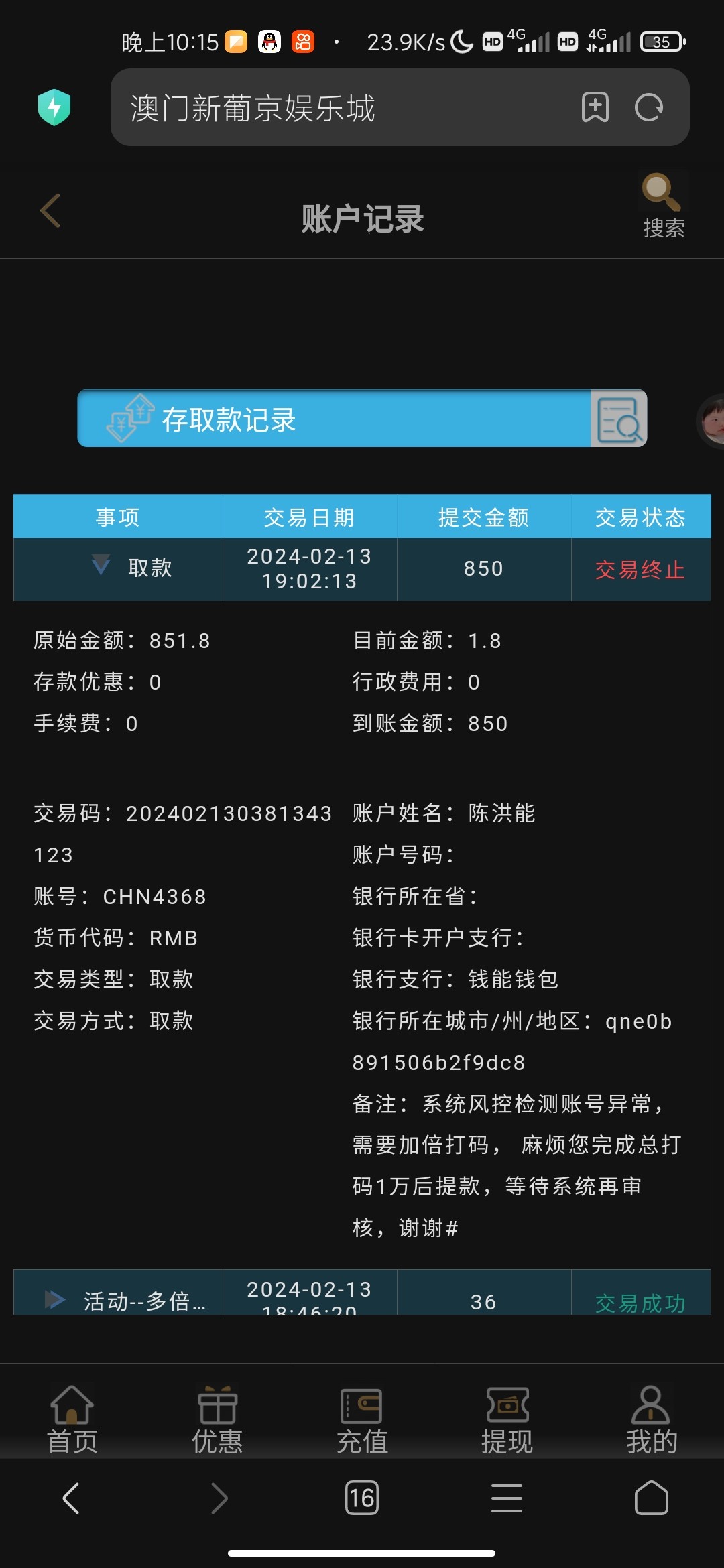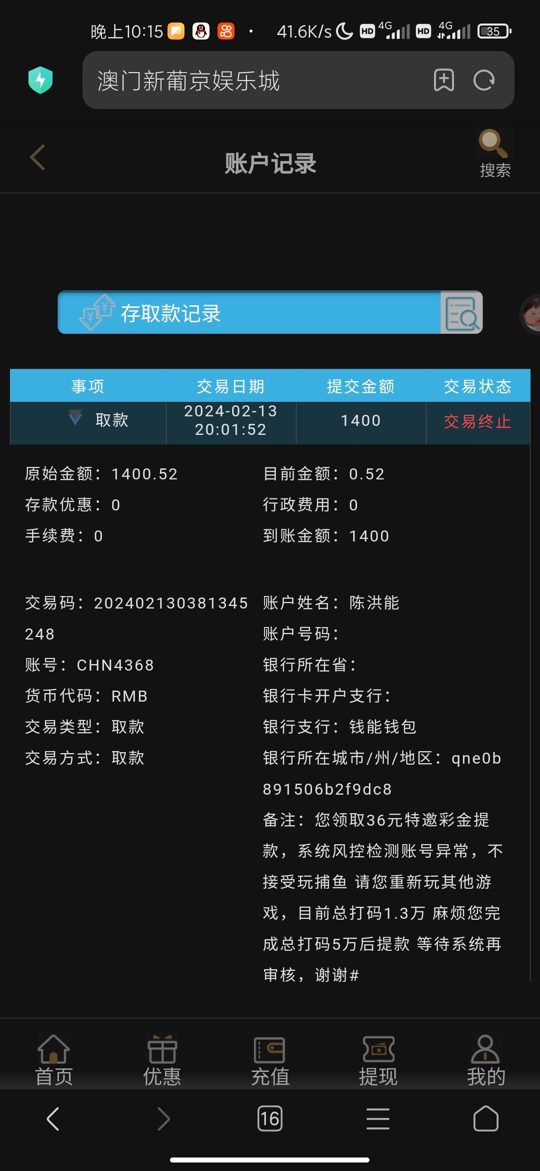 澳门新葡京4656 提现850各种借口加流水1万打够了赢了1400提现平台急眼加5万流水 打够5万赢到2000提现继续追加我10万流水《我不是赌神2000打不了10万》 客服说pg免费旋转不扣金额不给提现《pg旋转出免费旋转还要扣钱吗?这种野鸡台的台词平台各种玩》 财神捕鱼打免费炮说下注0单注异常 《看我发的捕鱼炮弹介绍》此平台链接4656.com慎玩 赢小额200就提切记超过600必加流水各种黑想赢大钱的谨慎此野鸡台没格局客服聊天截图我发下面了各种恶心三句名黑台请慎重,且玩且珍惜,远离赌博。
