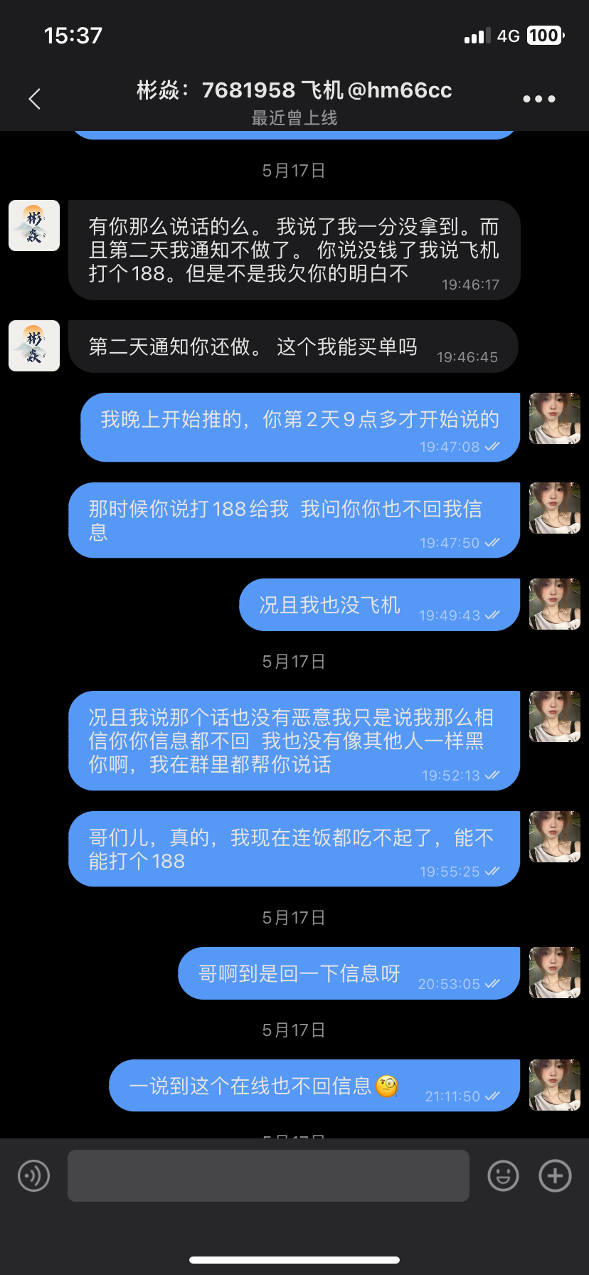 事情要从去年11月份开始说起 那时候有一个体育台叫天宫体育 找他对接 开始上线之后,我晚上推了两个下级 一共充了3000多  然后台子第二天就跑路了 他第二天九点多才通知  按照45%亏损给我  跑路之后一毛赔偿都没有  然后他说给188荼水  5月6号到现在  连188都拿不出来 还有一个事  他的导航网挂着金沙娱乐 有人被黑了 他立马下架 说不关他的事 也不赔付 直接把人拉黑,聊天记录这些我删除了 要不然给你们看一下 愿所有人找个好的上级  不要找这种废物东西  还好那时候是晚上不怎么推  要不然就亏大了