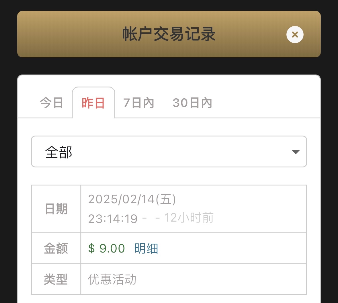 到账情况:自测(