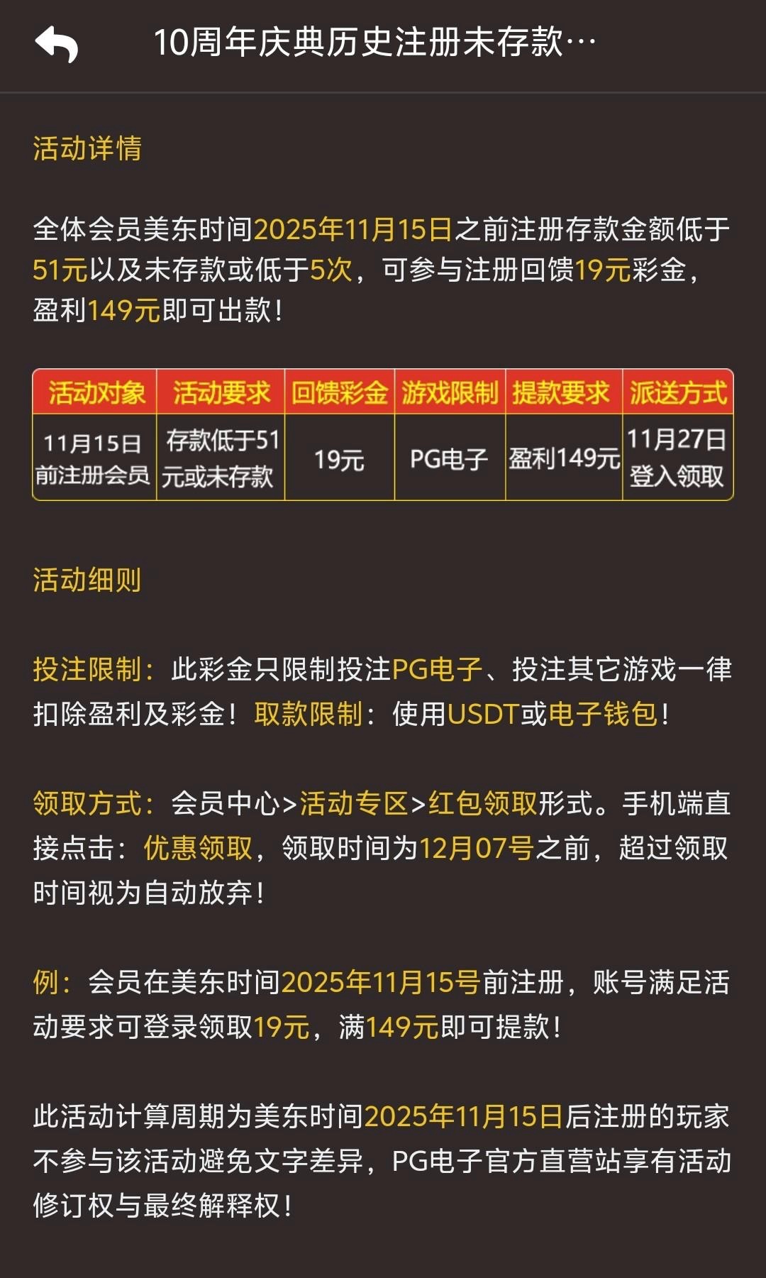 在11月15前注册的,存款低于51或未存款的兄弟可以登入领取一下彩金