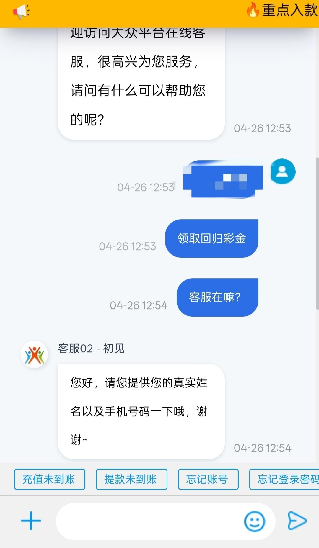 有充值过的老哥可以尝试联系客服碰瓷一下回归彩金看看在不在电话名单中,彩金一倍流水