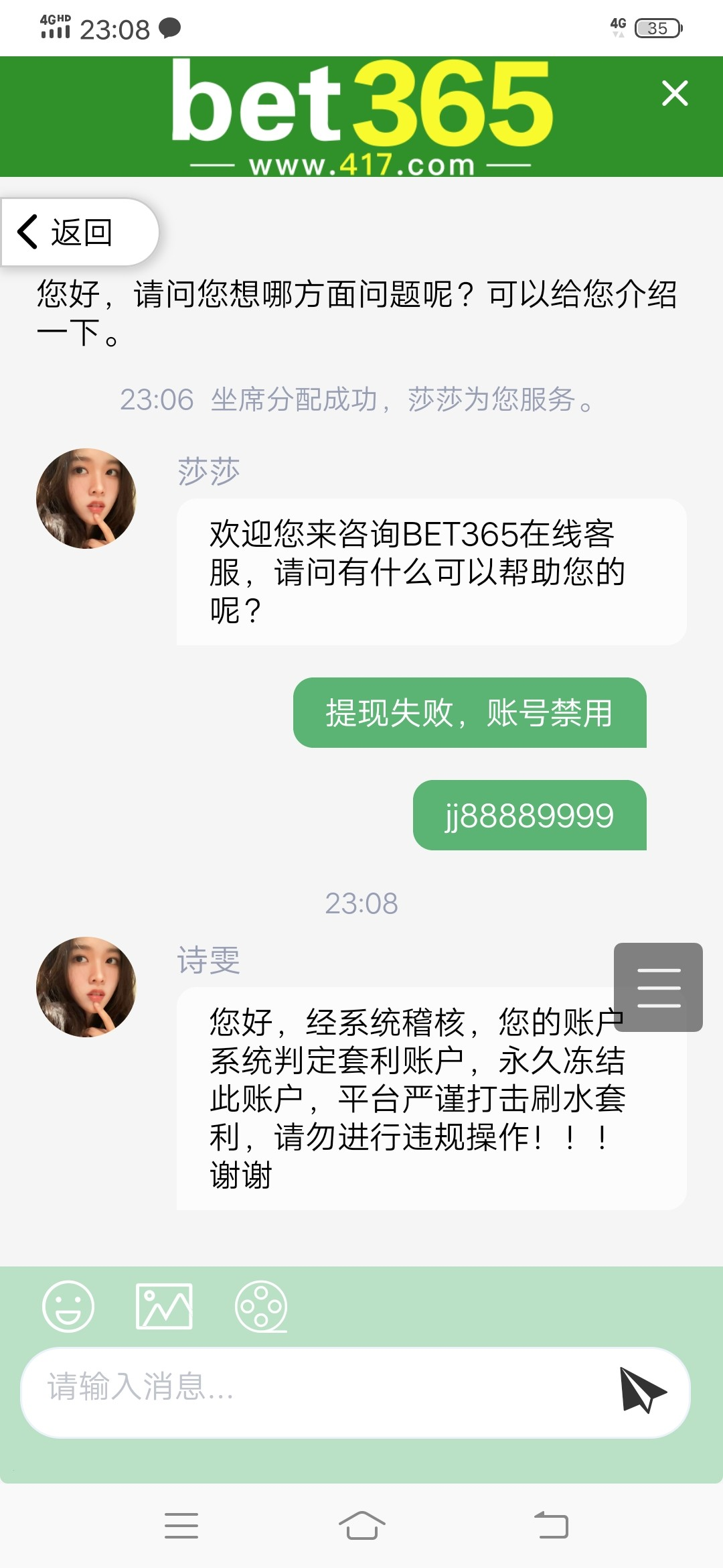 417都被封号的,要找找自身问题了,我8个号,同ip,全都能出款到帐,最高一个提4200