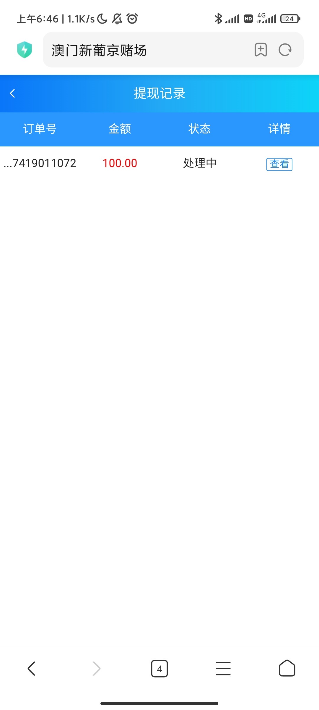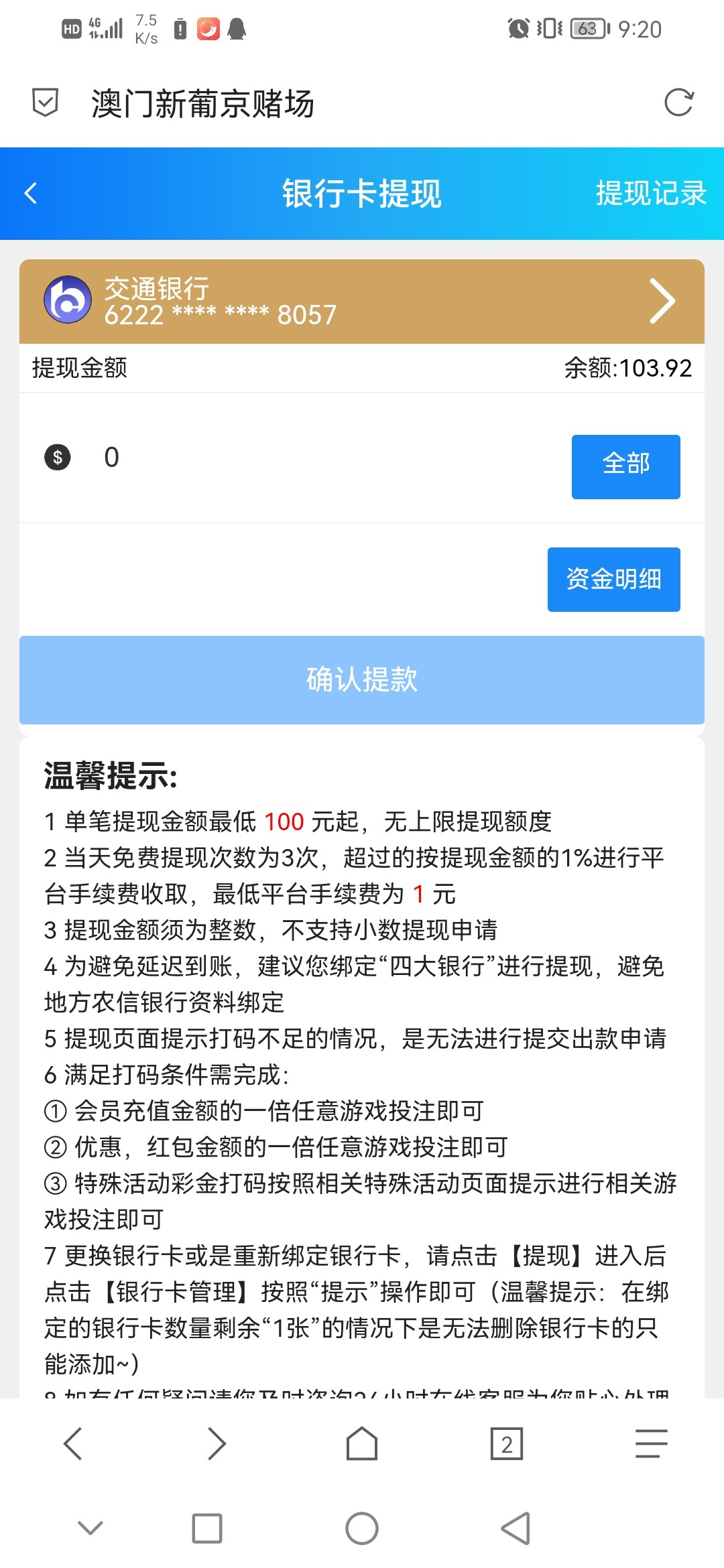 提了100,看到不到