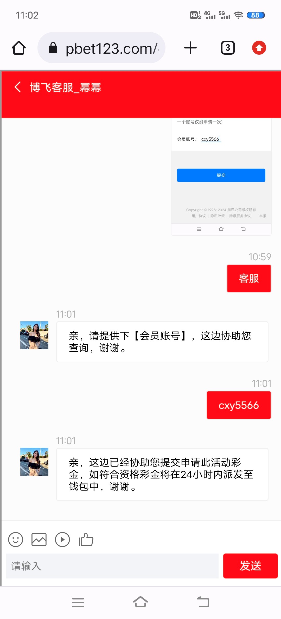新老用户都试试 进去网址有个悬浮窗填写问卷 在最下面填写自己的账号  然后截图提交发送截图给客服申请  5倍流水  下注低赔率不计算流水