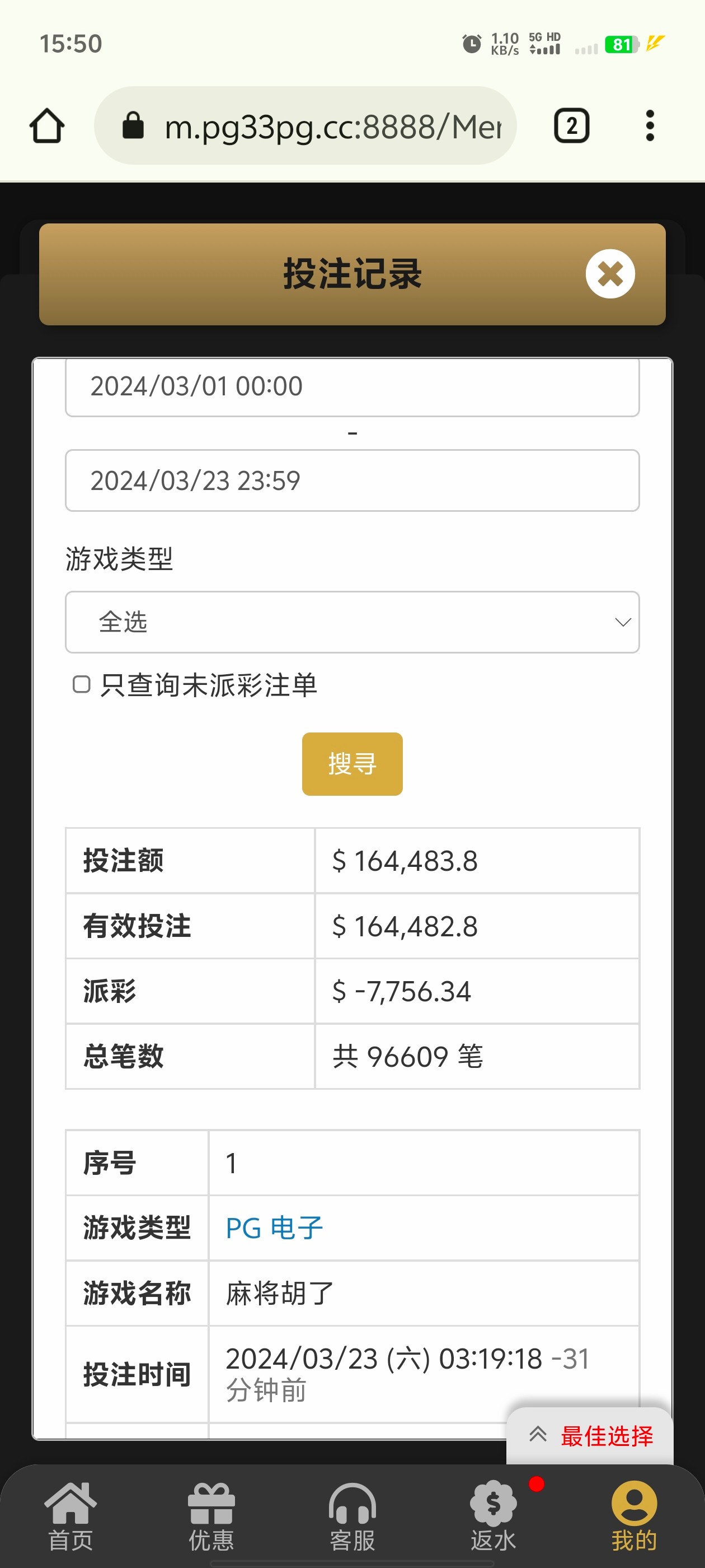 pg吃相是真尼玛难看了!每个月近1w只吃不吐!进免费就是几块钱!加注就狂嘎!前天5k麻将一杀1k麻二杀1k女王杀1k宝石杀2k宝石是真尼玛恶心2快一把的2000进了一个免费给了十几块!pg玩了好几年没见过千倍!基本每个月如下图人麻了