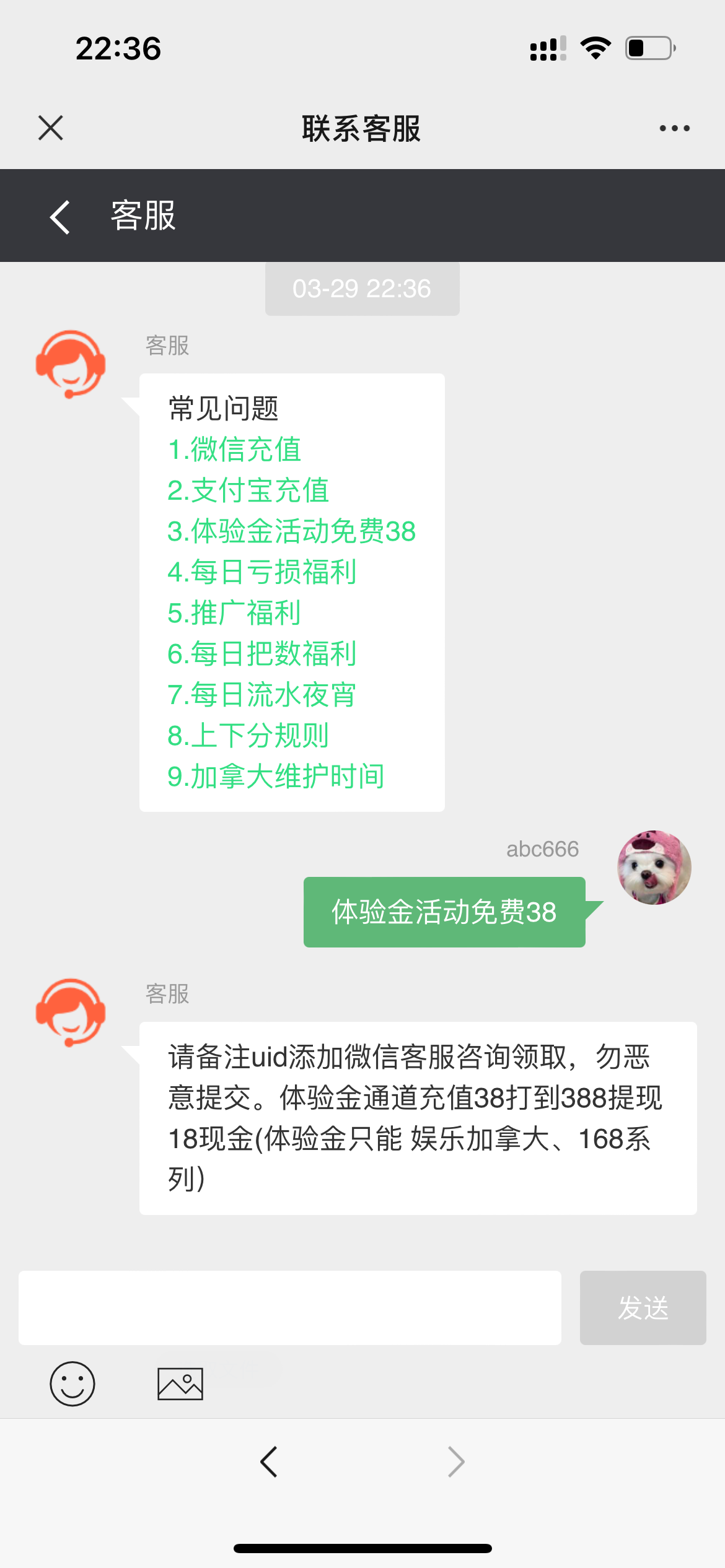 添加微信客服发ID去充值通道申请体验金打到388下18