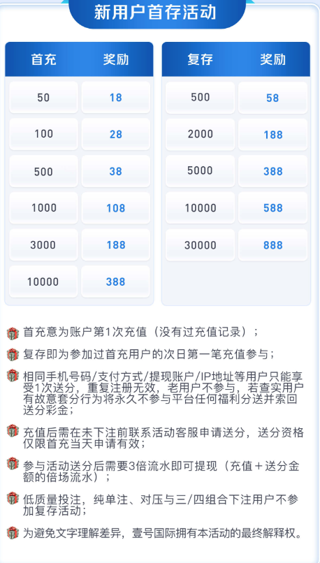 首存活动和以小博大只能参加一个参加100+100其他首存活动都无法参与!