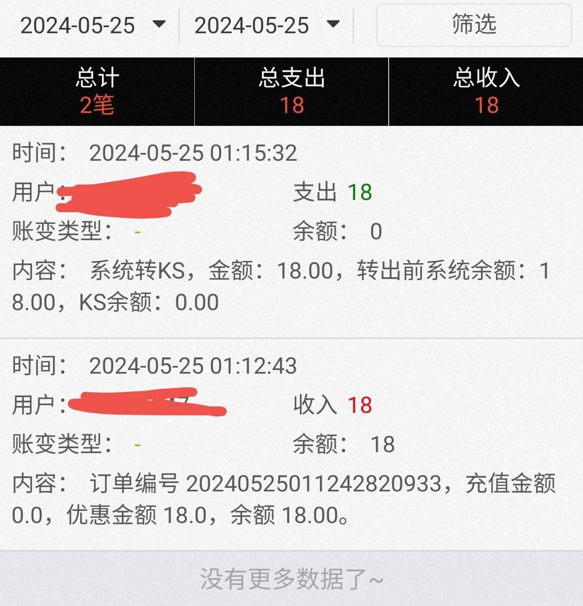 出款情况:自测(