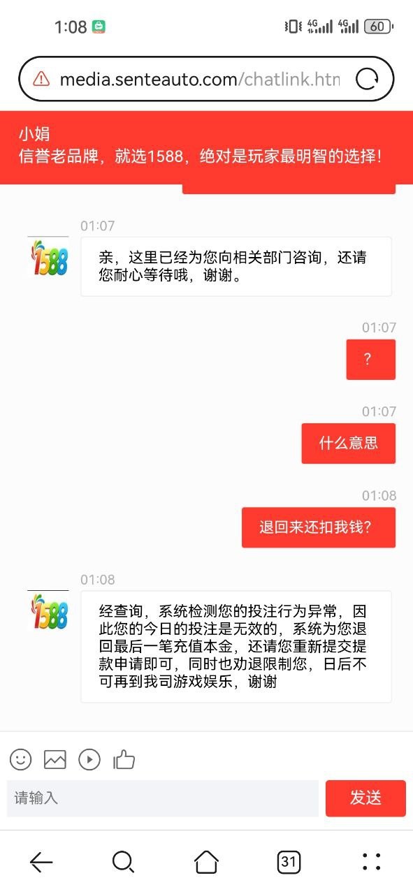 半天不出款,一查询就是下注异常,直接借口杀款客服直接关闭窗口换客服,找备用客服客服直接把窗口关了进都进不去。