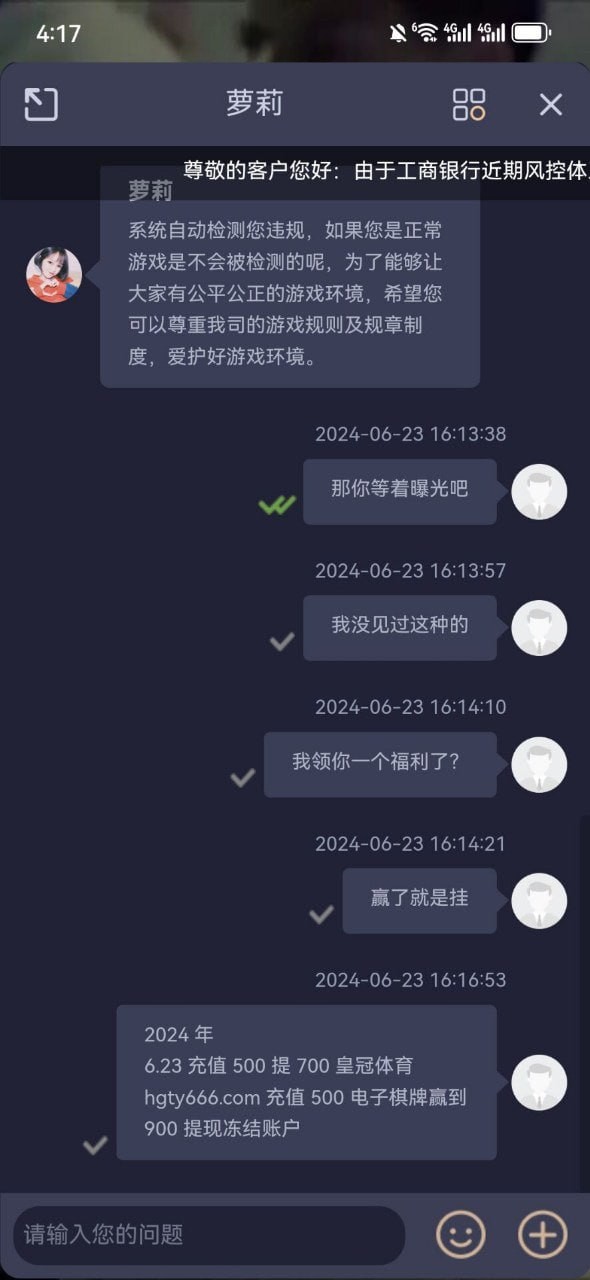 打到900提款700,半小时没到账问客服还是审核中,再回来登录就直接冻结了。 这家跟奇异果一家公司的应该,曝光让更多人看到。 hgty666.com