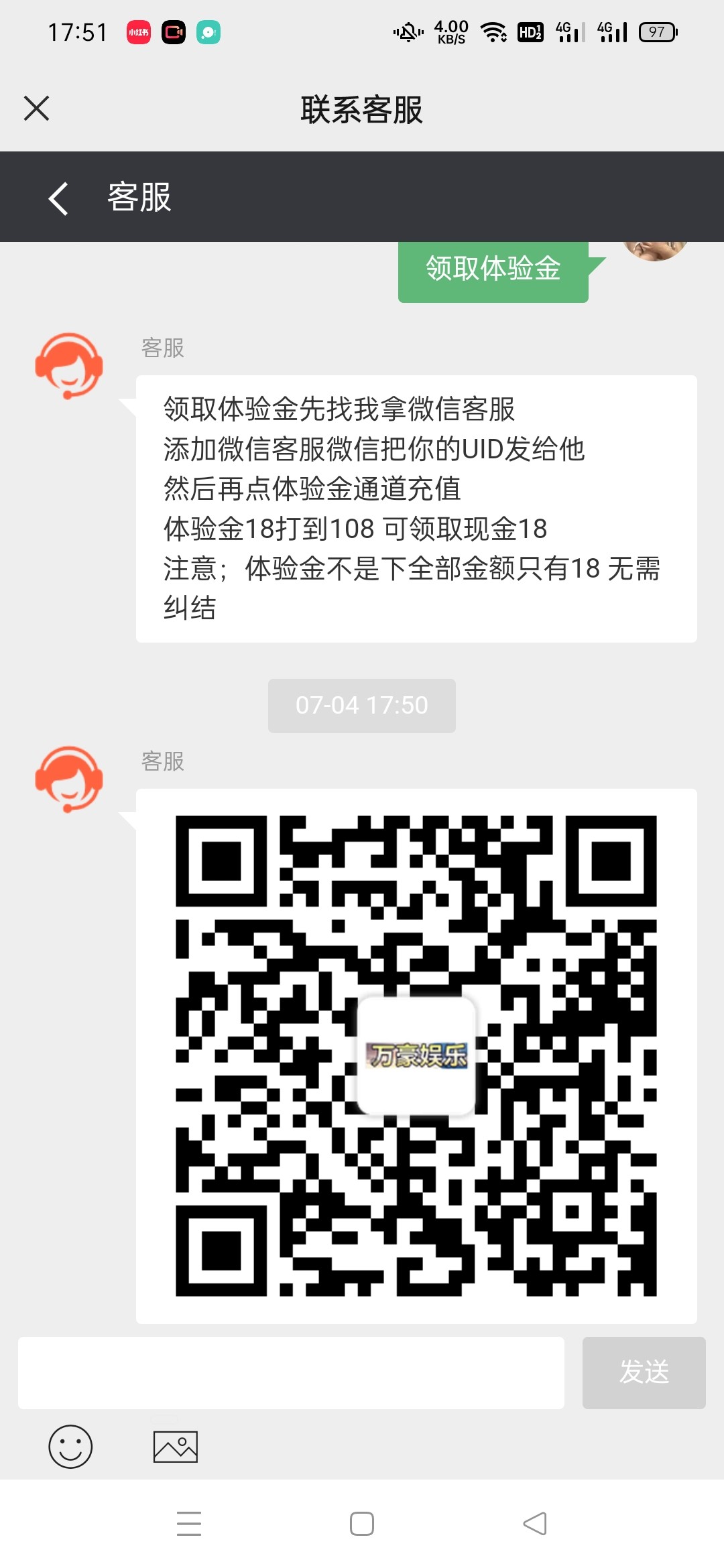 领取体验金先找我拿微信客服