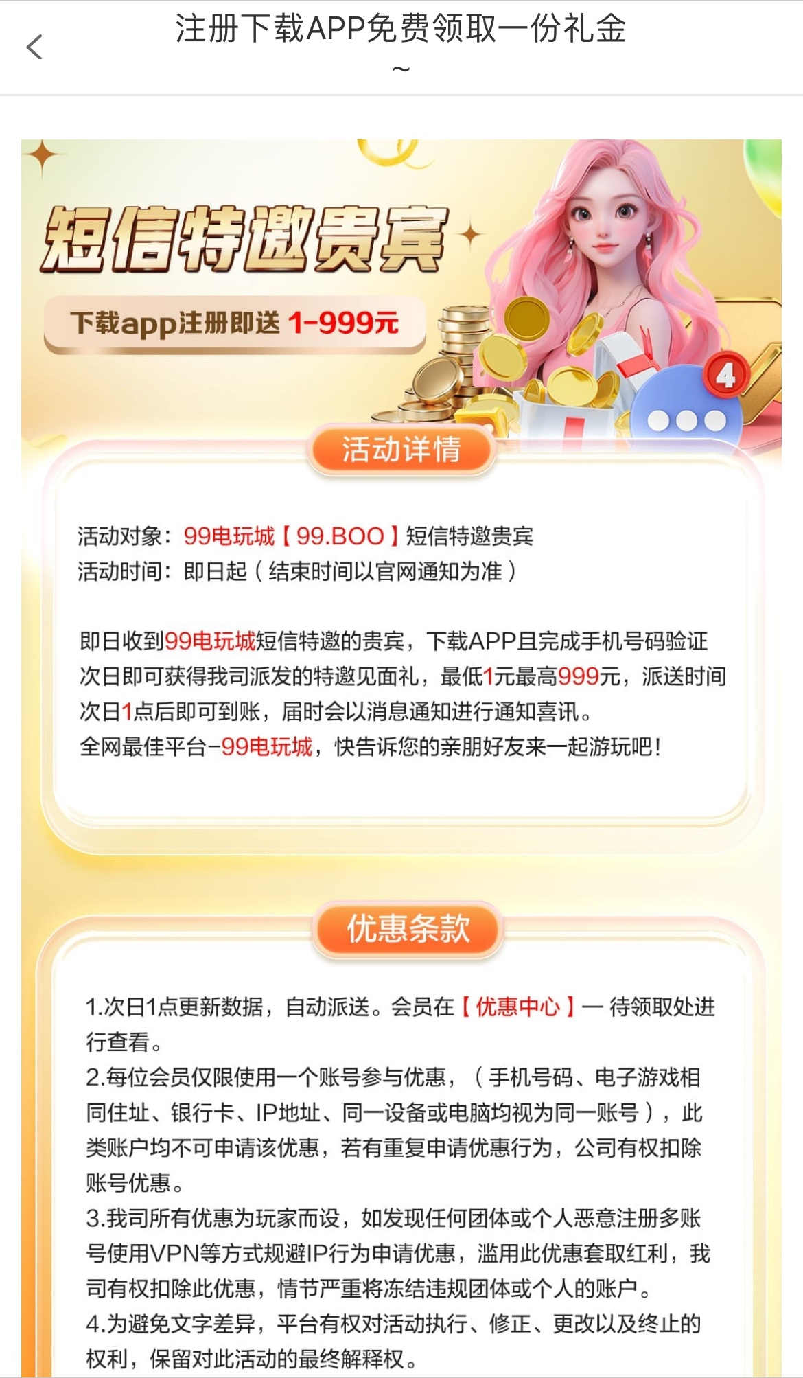 【99电玩城】—✅— 短信特邀彩金