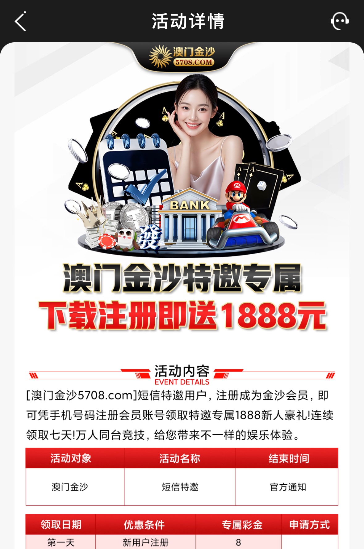 没玩过这个平台的兄弟可以去碰瓷一下短信特邀看看有没有,注册好联系客服申请短信特邀彩金即可