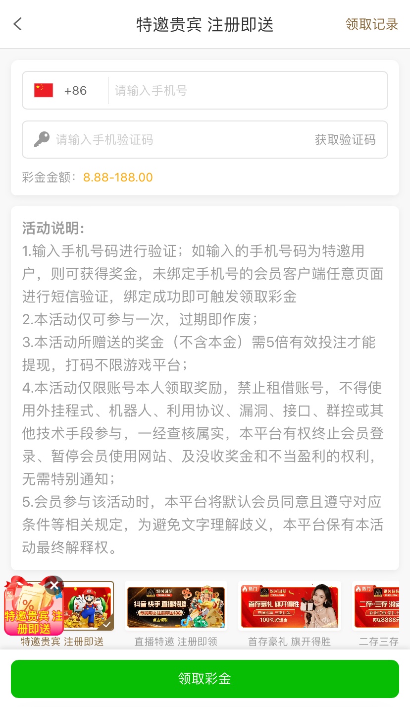 感兴趣的兄弟可以去碰瓷看看,注册好优惠里自助领取,5倍流水,不限制游戏