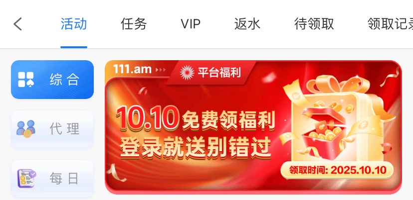 在10月10号之前注册的兄弟有登入彩金最低8彩金,彩金1倍流水