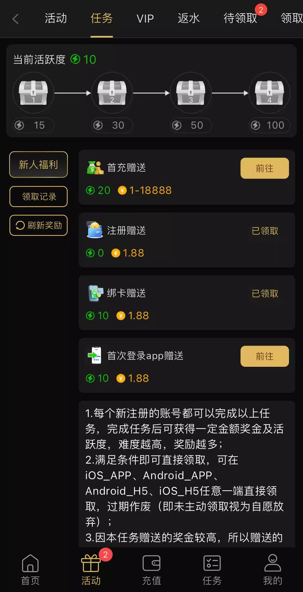 赌神可以去试试看能不能打出来,注册好任务里自助领取
