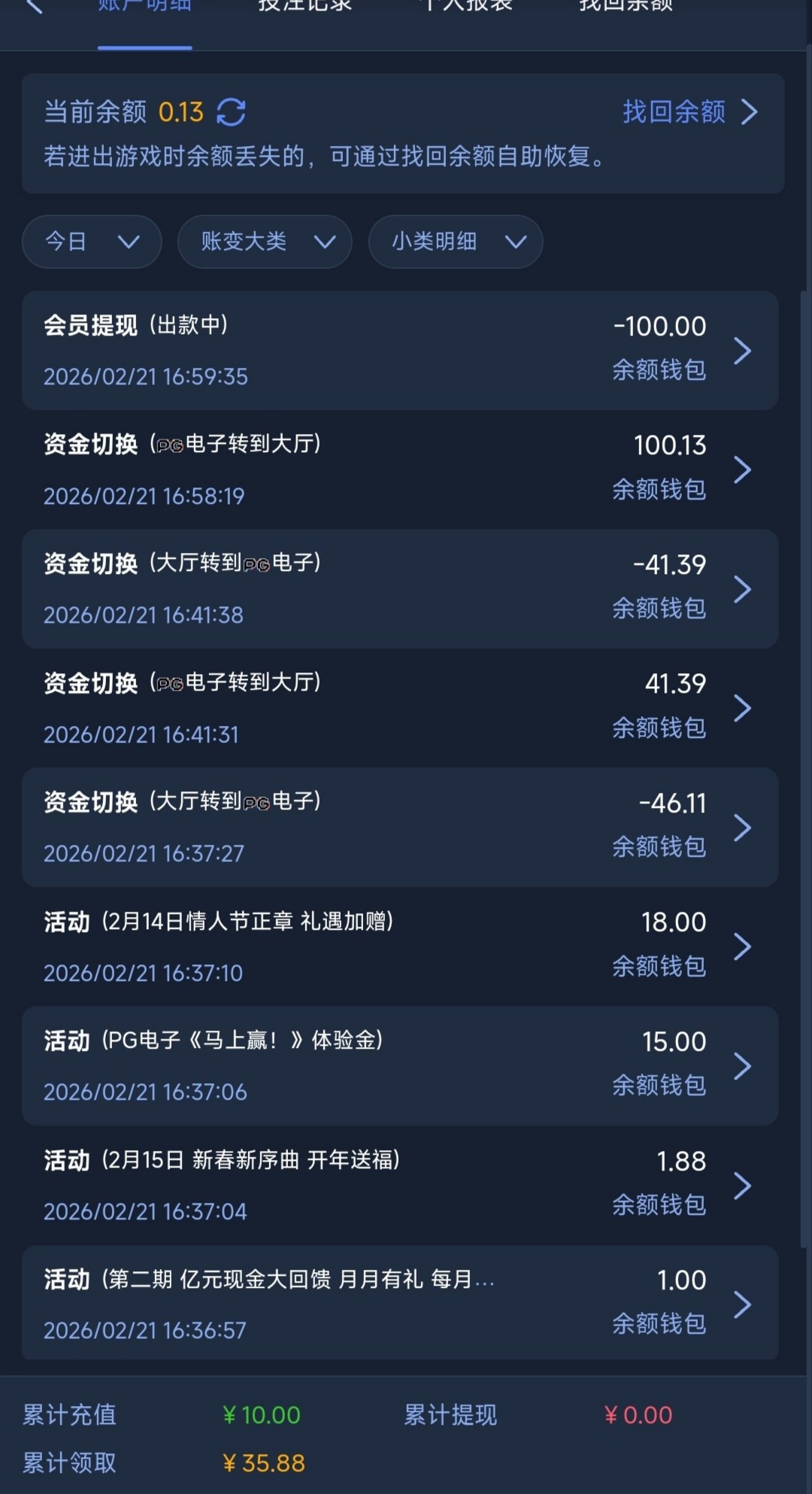 出款情况:自测(