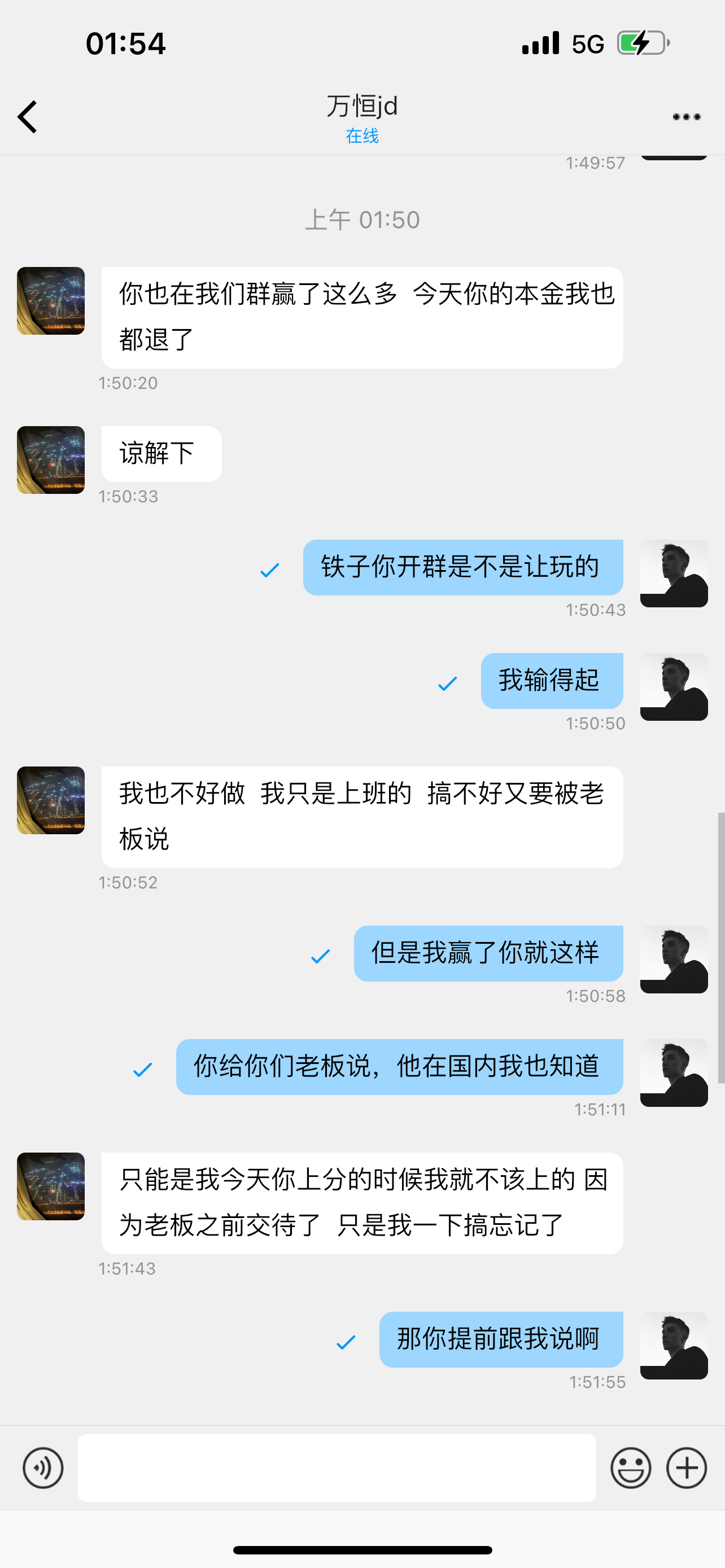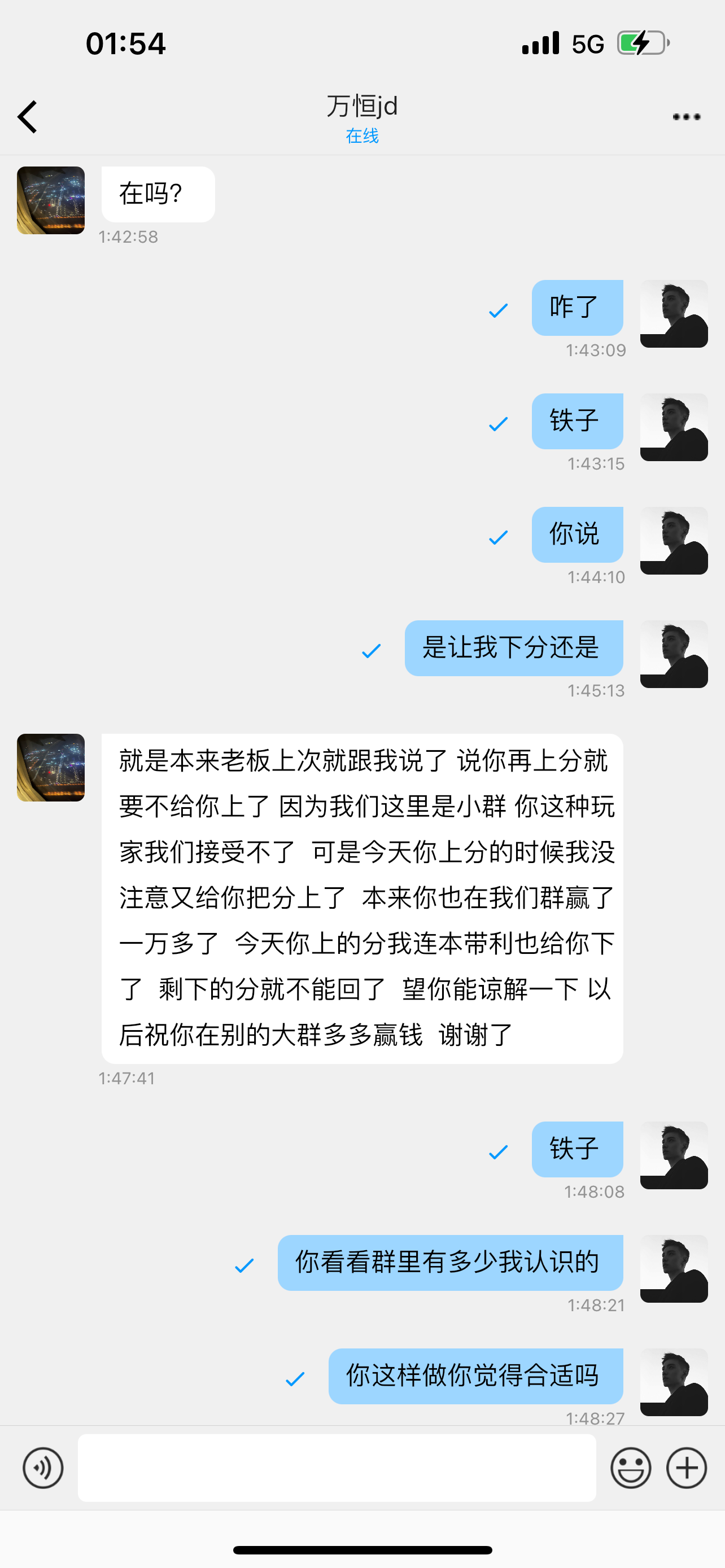 一开始我上分打到三千七,然后我去下分,他说卡怎么怎么样,最后下700给我三千说第二天下午给我下,完了一开始我没多想,后来凌晨我又玩了几把,打到了3680然后就私聊我说,我赢了一万了,剩下的不下了,然后就是各种找借口说他们老板不让我玩,然后说自己没注意我上分,你是眼睛瞎了么?不让我玩你还给我上分,然后就鲨鱼了,也感谢黑黑社区群里的兄弟们,都去问他,骂他,然后反转来了,说我对压,违规下注,咱们直接上图,兄弟们,嘴硬上图是最有效的,说我对压,你狗庄眼睛真瞎了。  还有最后说一句,感谢社区的兄弟们,玩2.8还得去认准大台子。